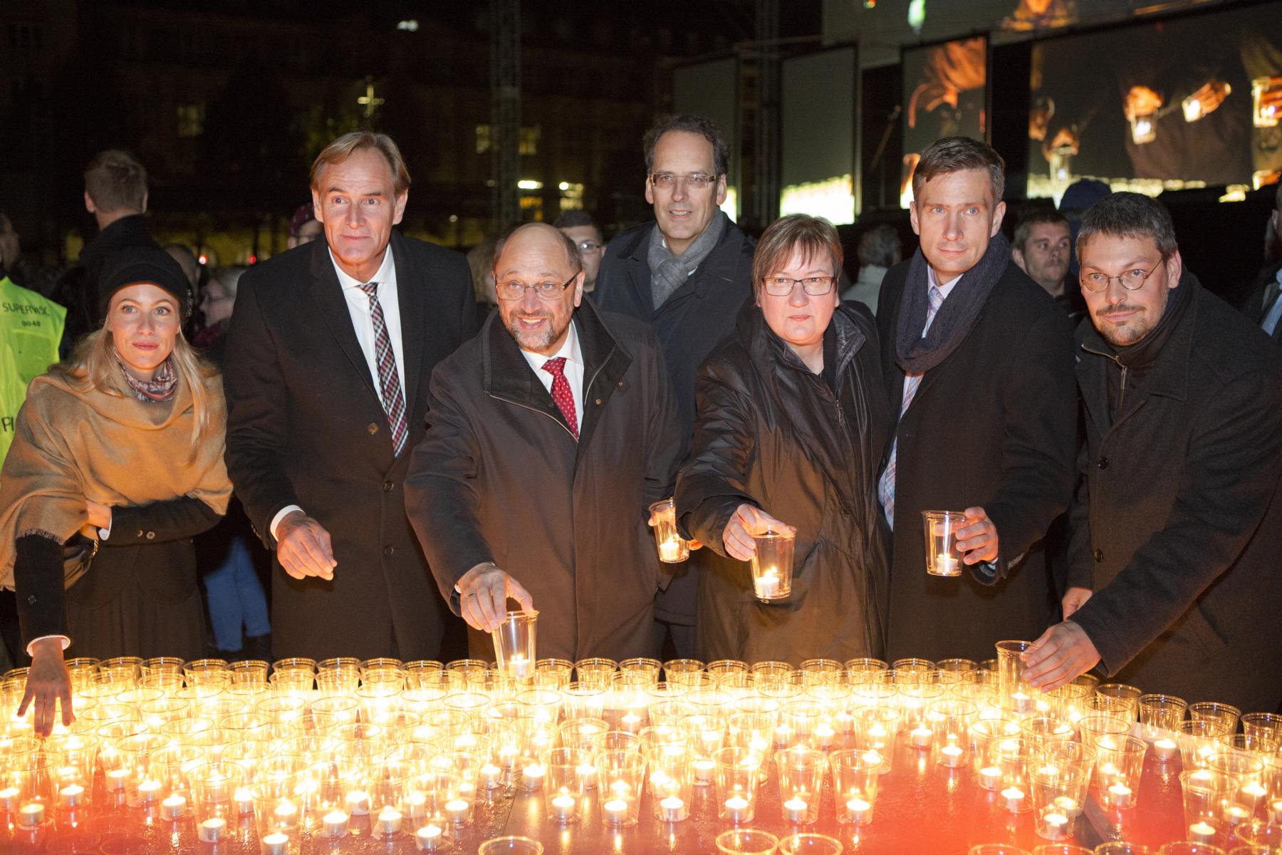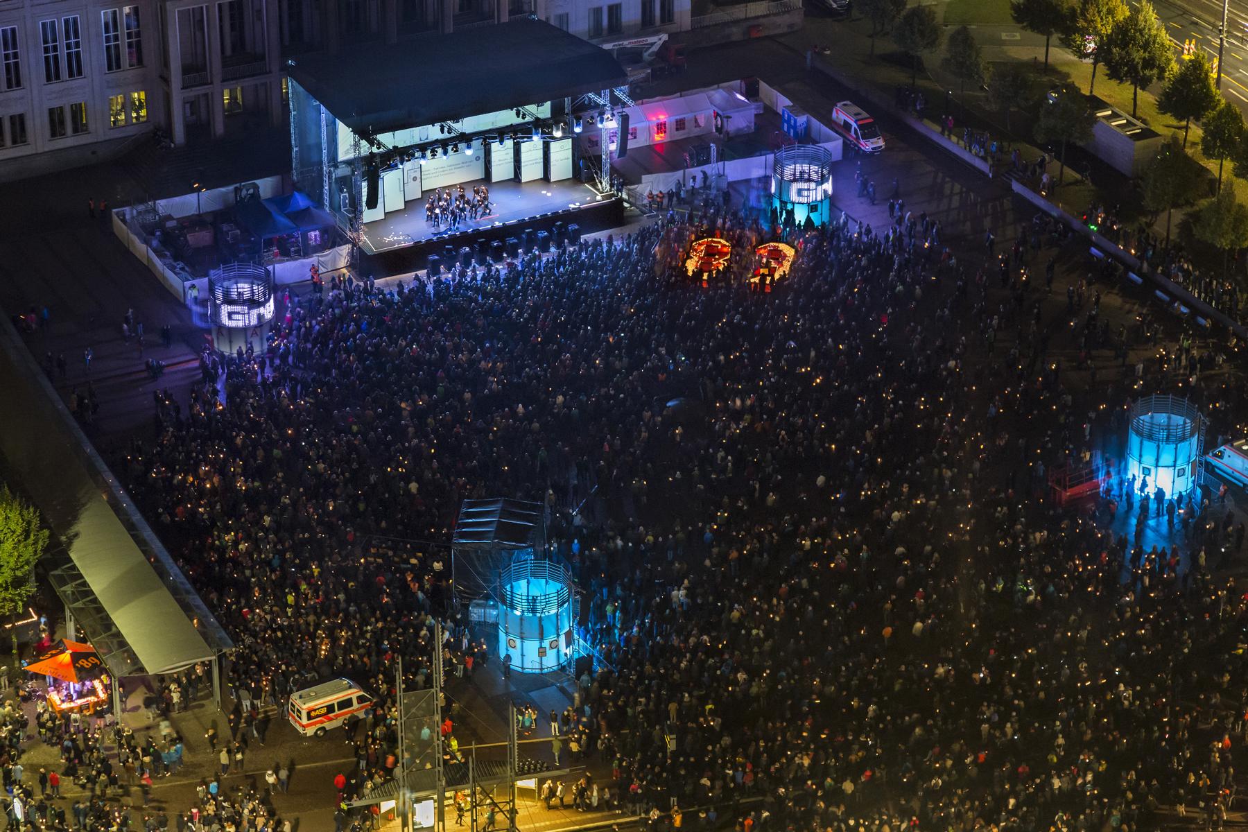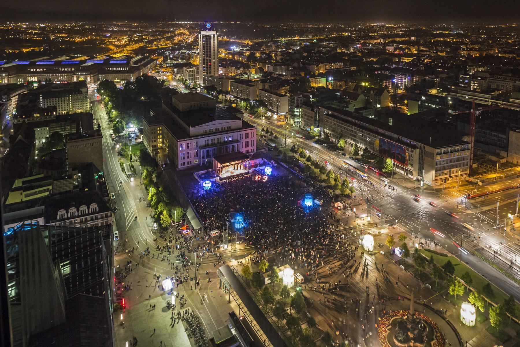 Mehr als 15.000 Leipziger und Gäste, darunter Martin Schulz (Präsident des Europäischen Parlaments), Iris Gleicke (Beauftragte der Bundesregierung für die neuen Bundesländer) und Martin Dulig (sächsischer Staatsminister für Wirtschaft, Arbeit und Verkehr) besuchten das Lichtfest Leipzig 2016. Sie erlebten ein facettenreiches künstlerisches Bühnenprogramm – vorgetragen vom Leipziger Ballett und dem bekannten Schauspieler Sylvester Groth. Sehen Sie hier Fotos vom Abend.
